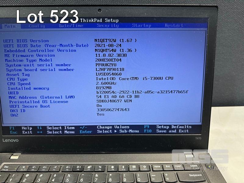 LAPTOP, LENOVO THINKPAD T470, TYPE 20HE, CORE i5 7300U (7TH GEN) @ 2.6GHz, 8GB DDR4 RAM, 256GB NVMe M.2 SSD, 14" WIDESCREEN (1366x768), INTEL HD VIDEO, Wi-Fi, BLUETOOTH, WINDOWS 10 PRO INSTALLED & POWER SUPPLY S/N:PF0UKZYU