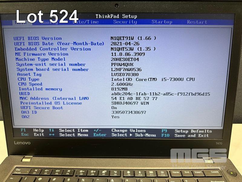 LAPTOP, LENOVO THINKPAD T470, TYPE 20HE, CORE i5 7300U (7TH GEN) @ 2.6GHz, 8GB DDR4 RAM, 256GB NVMe M.2 SSD, 14" WIDESCREEN (1366x768), INTEL HD VIDEO, Wi-Fi, BLUETOOTH, WINDOWS 10 PRO INSTALLED & POWER SUPPLY S/N:PF0W4QVX