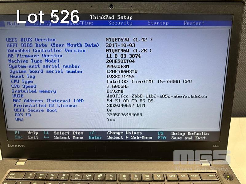 LAPTOP, LENOVO THINKPAD T470, TYPE 20HE, CORE i5 7300U (7TH GEN) @ 2.6GHz, 8GB DDR4 RAM, 256GB NVMe M.2 SSD, 14" WIDESCREEN (1366x768), INTEL HD VIDEO, Wi-Fi, BLUETOOTH, WINDOWS 10 PRO INSTALLED & POWER SUPPLY (NOTE: MINOR MARKS ON SCREEN) S/N:PF0Z0FXN