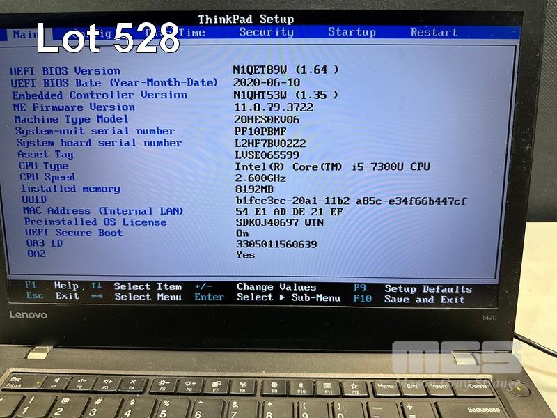 LAPTOP, LENOVO THINKPAD T470, TYPE 20HE, CORE i5 7300U (7TH GEN) @ 2.6GHz, 8GB DDR4 RAM, 256GB NVMe M.2 SSD, 14" WIDESCREEN (1920x1080), INTEL HD VIDEO, Wi-Fi, BLUETOOTH, WINDOWS 10 PRO INSTALLED & POWER SUPPLY (NOTE: BATTERY NOT CHARGING, MARKS ON SCREEN) S/N:PF10PBMF