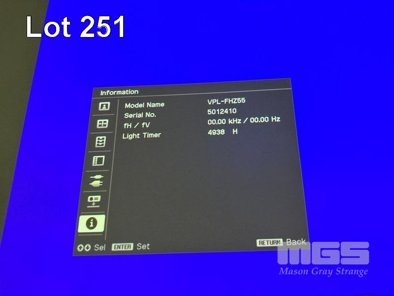 LASER PROJECTOR, SONY VPL-FHZ55 WUXGA 3LCD, 4,000 LUMENS, HDMI INPUT, 4,938 HOURS SHOWING (NO REMOTE) S/N:5012410