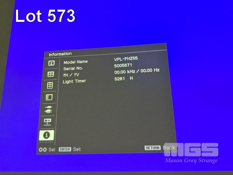 LASER PROJECTOR, SONY VPL-FHZ55 WUXGA 3LCD, 4,000 LUMENS, HDMI INPUT, 5,281 HOURS SHOWING (NO REMOTE) S/N:5005671