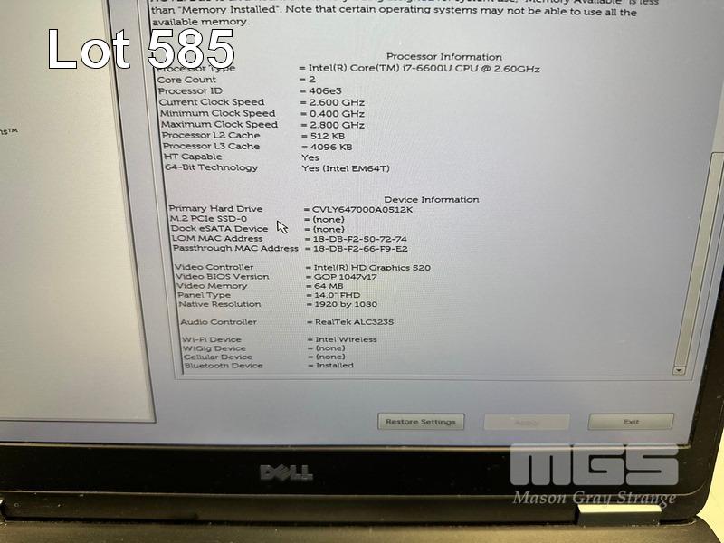 LAPTOP, DELL LATITUDE E7470, CORE i7 6600U (6TH GEN) @ 2.6GHz, 16GB DDR4 RAM, 512GB M.2 SSD, 14" WIDESCREEN (1920x1080), INTEL HD GRAPHICS 520, Wi-Fi, BLUETOOTH, WINDOWS 10 HOME INSTALLED & POWER SUPPLY (NOTE: KEYBOARD FAULT - KEYS HARD TO PRESS, CASING POOR CONDITION) S/N:8TV6QF2