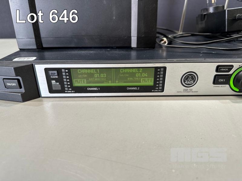AKG DSR700 V2 DIGITAL WIRELESS STATIONARY RECEIVER WITH 1 x DHT700 HANDHELD MICROPHONE, 1 x DPT700 BODYPACK TRANSMITTER, 1 x LAPEL MICROPHONE, 1 x CU700 CHARGING UNIT & POWER SUPPLY