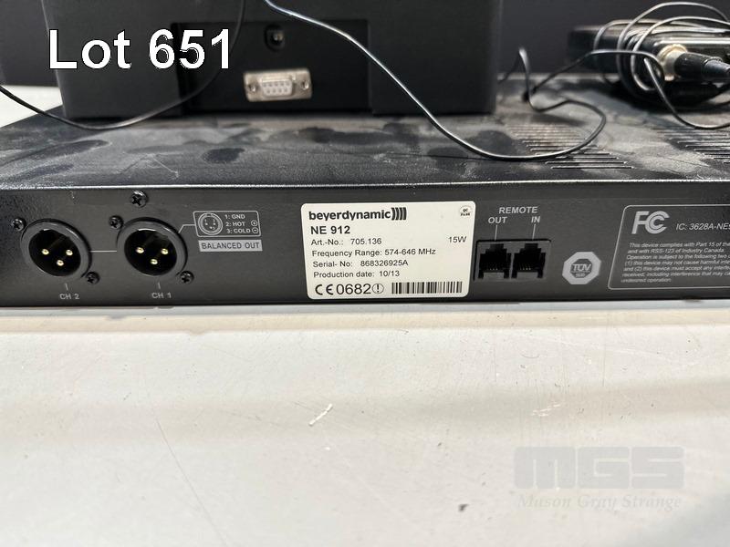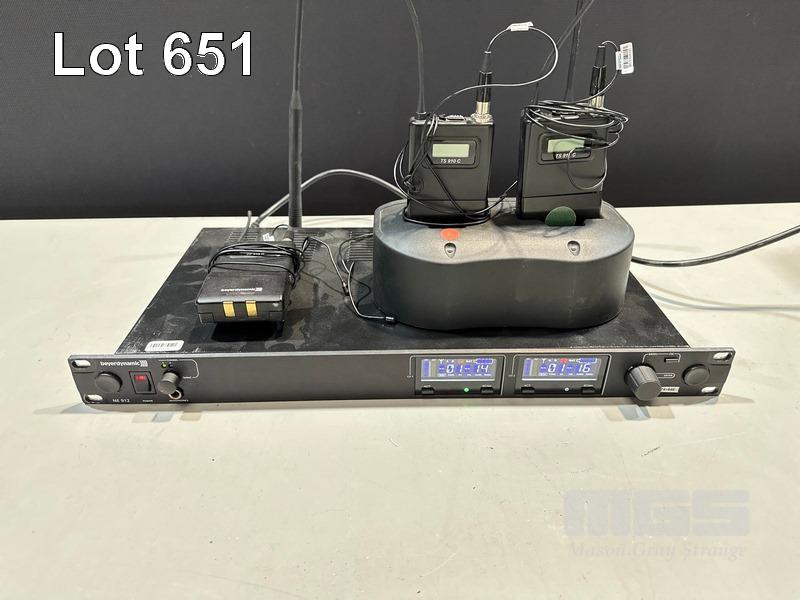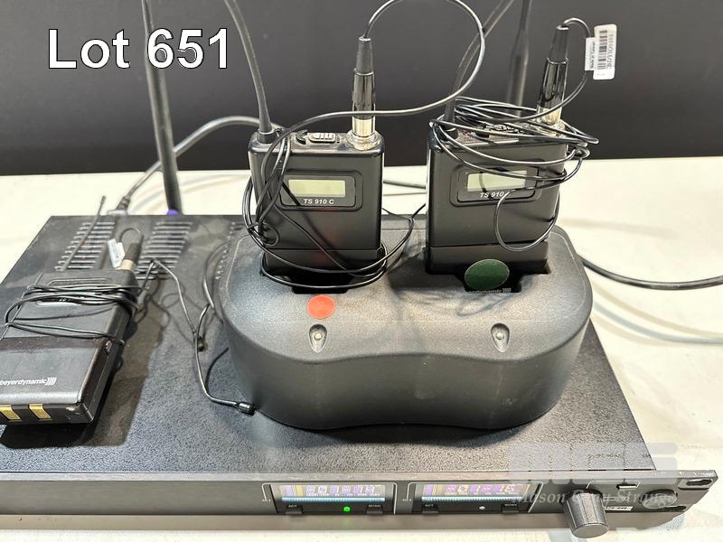 BEYERDYNAMIC NE 912 2-CHANNEL WIRELESS AUDIO RECEIVER WITH 3 x TS910C BELTPACK TRANSMITTERS, 3 x LAPEL MICROPHONES, 1 x CHARGING DOCK (NO POWER SUPPLY)