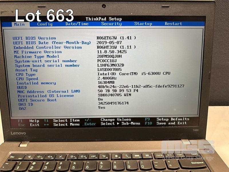 LAPTOP, LENOVO THINKPAD T460, TYPE 20FM, CORE i5 6300U (6TH GEN) @ 2.4GHz, 16GB DDR3 RAM, 256GB SSD, 14" WIDESCREEN (1920x1080), INTEL HD VIDEO, Wi-Fi, BLUETOOTH, WINDOWS 10 PRO INSTALLED & POWER SUPPLY (NOTE: MARKS & BRIGHT SPOT ON SCREEN) S/N:PC0CC1UJ