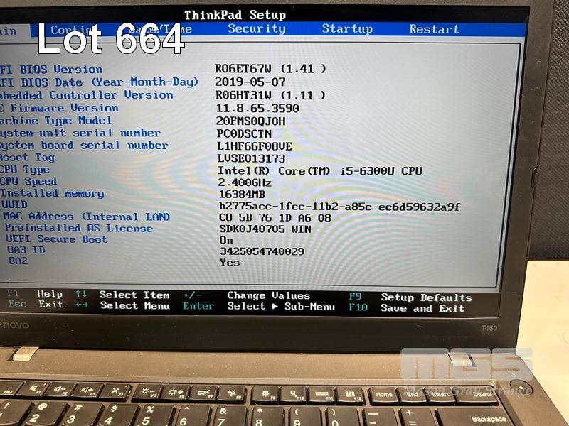 LAPTOP, LENOVO THINKPAD T460, TYPE 20FM, CORE i5 6300U (6TH GEN) @ 2.4GHz, 16GB DDR3 RAM, 256GB SSD, 14" WIDESCREEN (1920x1080), INTEL HD VIDEO, Wi-Fi, BLUETOOTH, WINDOWS 10 PRO INSTALLED & POWER SUPPLY (NOTE: MARKS ON SCREEN) S/N:PC0DSCTN