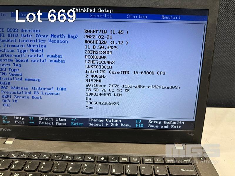 LAPTOP, LENOVO THINKPAD T460, TYPE 20FM, CORE i5 6300U (6TH GEN) @ 2.4GHz, 8GB DDR3 RAM, 256GB SSD, 14" WIDESCREEN (1366x768), INTEL HD VIDEO, Wi-Fi, BLUETOOTH, WINDOWS 10 PRO INSTALLED & POWER SUPPLY (NOTE: MINOR MARKS ON SCREEN) S/N:PC0K0W0K