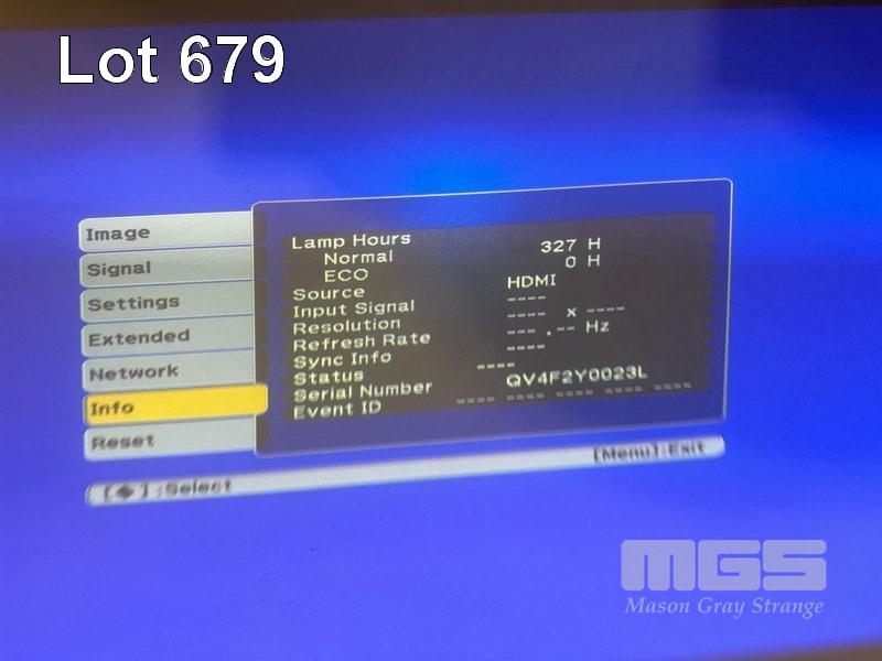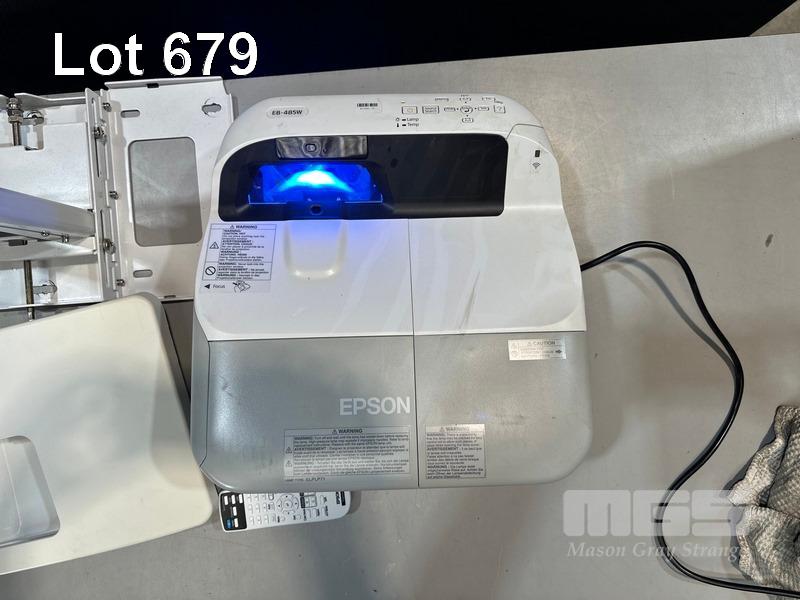 PROJECTOR, EPSON EB-485W ULTRA SHORT-THROW 3LCD, 3,100 LUMENS, HDMI INPUT WITH REMOTE, 327 NORMAL HOURS SHOWING WITH WALL BRACKET S/N:QV4F2Y0023L