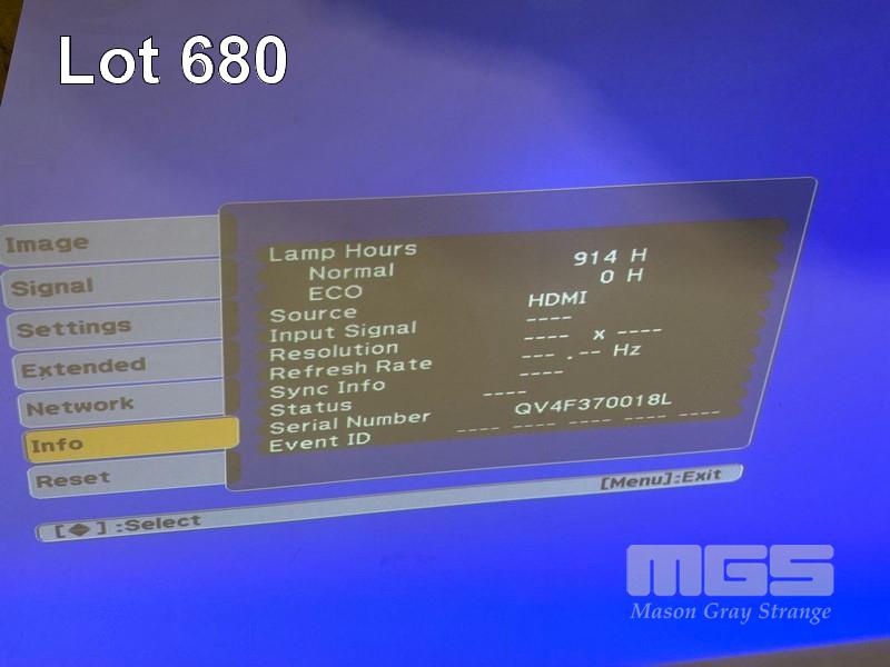 PROJECTOR, EPSON EB-485W ULTRA SHORT-THROW 3LCD, 3,100 LUMENS, HDMI INPUT WITH REMOTE, 914 NORMAL HOURS SHOWING WITH WALL BRACKET S/N:QV4F370018L