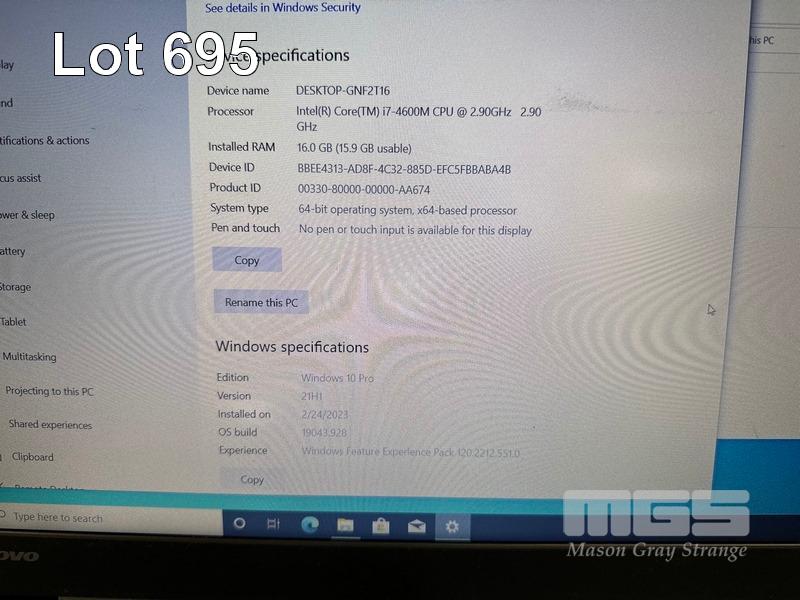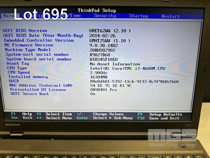 LAPTOP, LENOVO THINKPAD W540, TYPE 20BH, CORE i7 4600M (4TH GEN) @ 2.9GHz, 16GB DDR3 RAM, 256GB SSD, DVD-RW, 15.6" WIDESCREEN (1920x1080), INTEL HD VIDEO, 2GB NVIDIA QUADRO K1100M VIDEO, Wi-Fi, BLUETOOTH, WINDOWS 10 PRO INSTALLED (NO POWER SUPPLY) (NOTE: 1 x USB PORT FAULTY, MARKS & BRIGHT SPOTS ON SCREEN) S/N:R9027D68