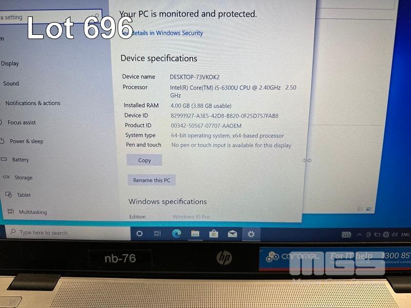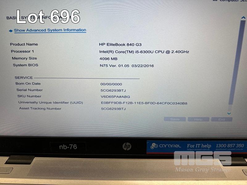 LAPTOP, HP ELITEBOOK 840 G3, CORE i5 6300U (6TH GEN) @ 2.4GHz, 4GB DDR4 RAM, 128GB SSD, 14" WIDESCREEN (1920x1080), INTEL HD VIDEO, Wi-Fi, BLUETOOTH, WINDOWS 10 PRO INSTALLED & POWER SUPPLY (NOTE: BATTERY NOT CHARGING, MINOR MARKS ON SCREEN) S/N:5CG6293BTJ