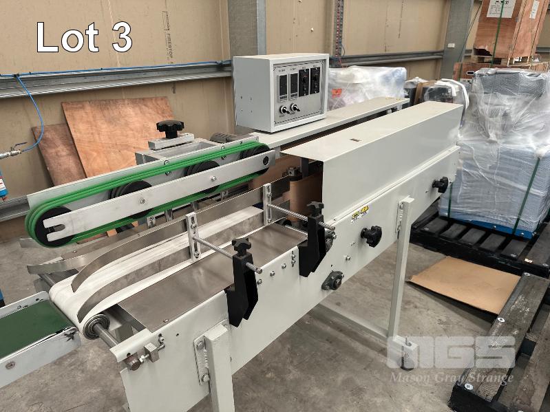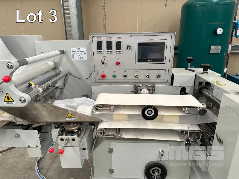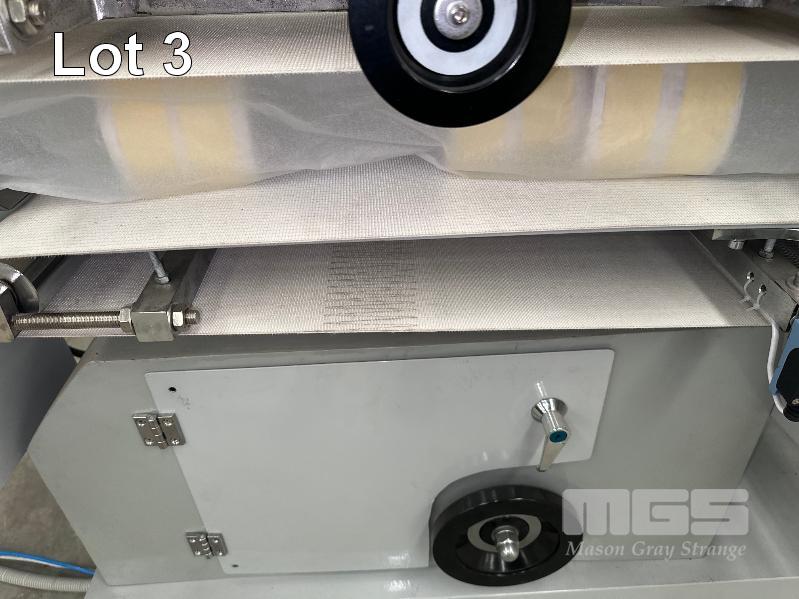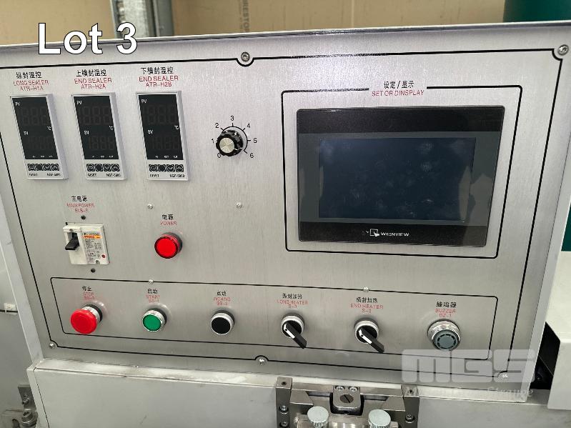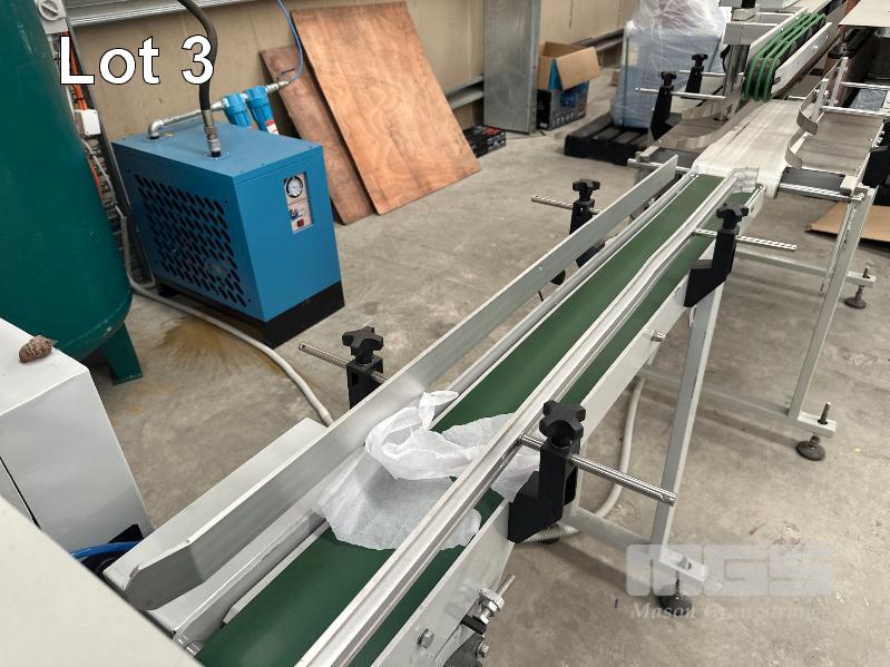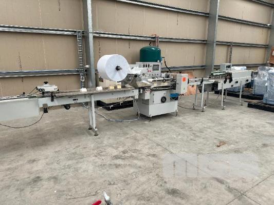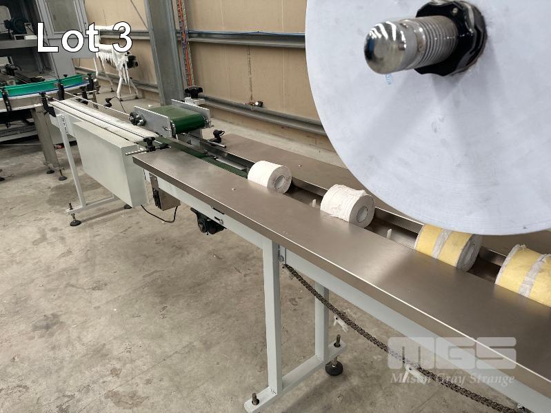 TOILET PAPER ROLL AUTO WRAPPER, CHINA CIRCA 2021 PLC, DIGITAL CONTROLLER INFEED BELT DRIVE CONVEYOR SINGLE ROLL PAPER AUTO FEED ROLL/WRAP/CUT OFF WITH OUTFEED CONVEYOR TO AUTO HEAT/SEAL WRAPPER CONVEYOR 415V CABLE TO FIRST SWITCH (SWITCH/JUNCTION BOX STAYS WITH BUILDING)
