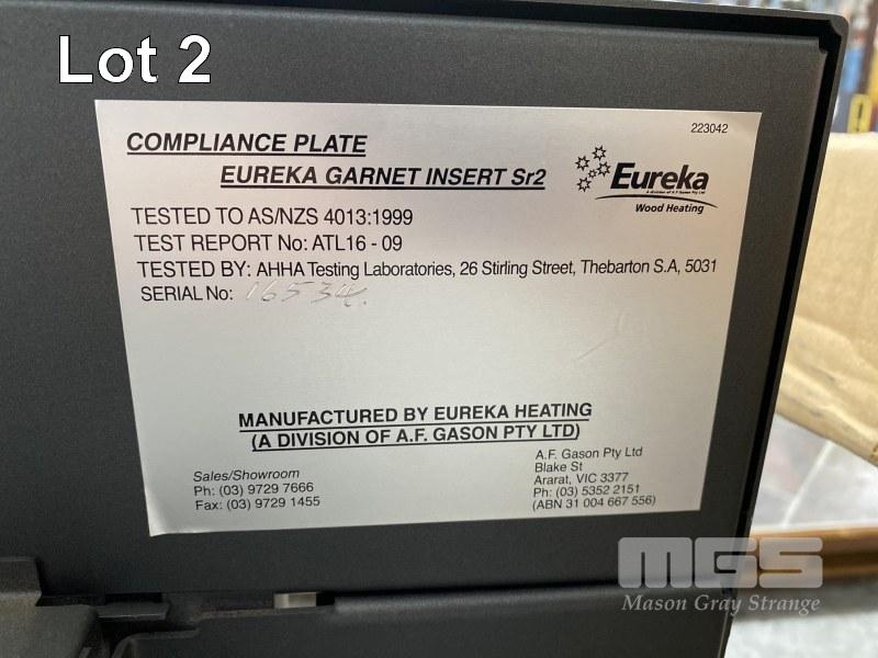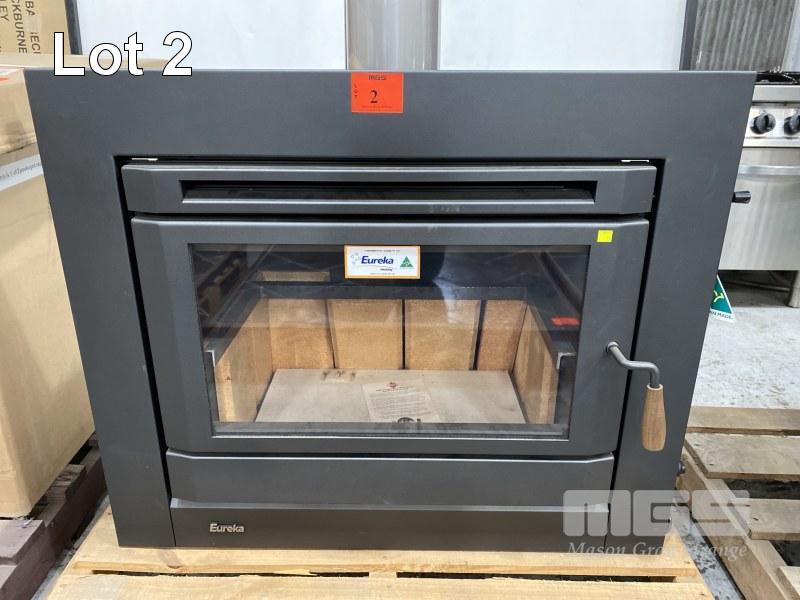 EUREKA WOOD HEATER, TYPE: GARNET INSERT SR2, SERIAL: 16534, 990 x 825 x 500mm, 240v FAN, AS NEW!