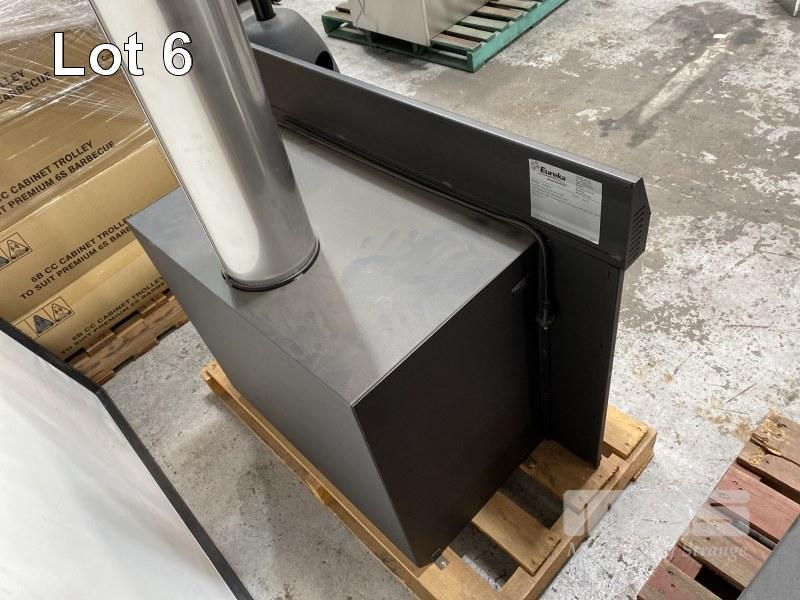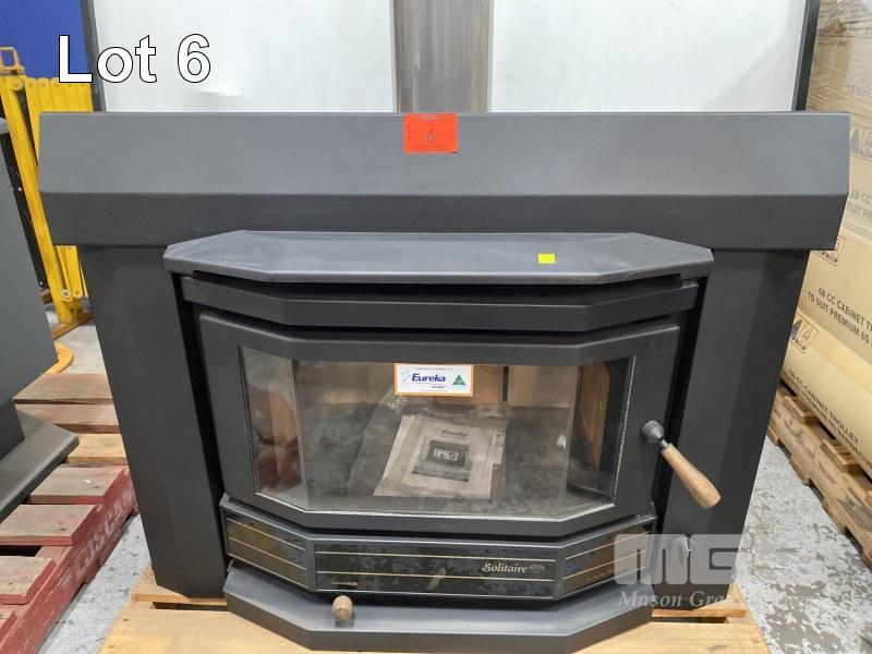 EUREKA WOOD HEATER, TYPE: INSERT, MODEL: SOLITAIRE, SERIAL: 1802, 1075 x 850 x 620mm, 240v FAN, AS NEW!