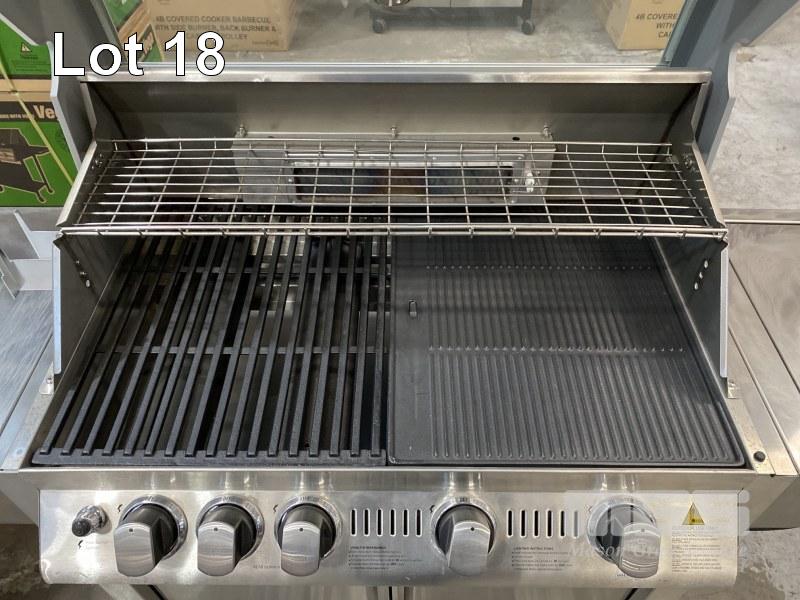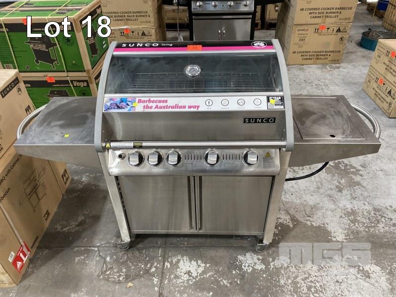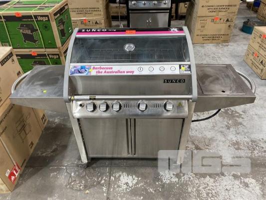 SUNCO 4 BURNER BBQ WITH CABINET TROLLEY, STAINLESS STEEL WINDOW HOOD, MODEL: SC5812, DISPLAY MODEL, ORP: $1,799