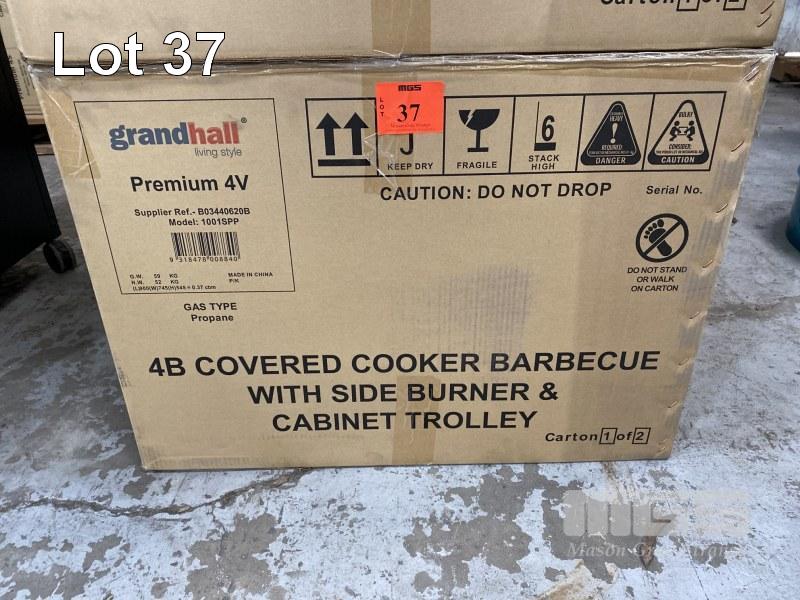 GRANDHALL PREMIUM 4 BURNER HOODED BBQ, BLACK