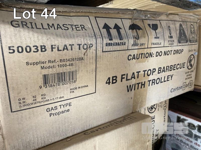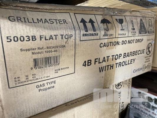 GRILLMASTER 4 BURNER FLAT TOP BBQ, ON MOBILE TROLLEY