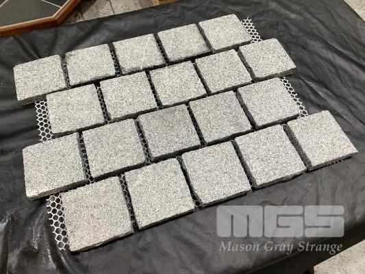 1 x CRATE COBBLESTONE, STONE: 100 x 100 x 20mm, SHEET: 540 x 430 x 20mm, 99 SHEETS TOTAL, DARK GREY GRANITE, APPROX 23m2,NEW!