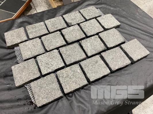 1 x CRATE COBBLESTONE, STONE: 100 x 100 x 20mm, SHEET: 540 x 430 x 20mm, 99 SHEETS TOTAL, BLACK GRANITE, APPROX 23m2, NEW!