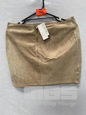 EXL WOMENS SUEDE SKIRT, TAN, SIZE: 14, ORP: $199