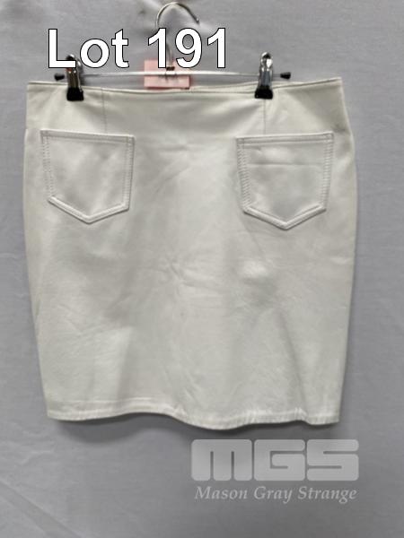 EXL WOMENS LEATHER SKIRT, WHITE, SIZE: 14, ORP: $199