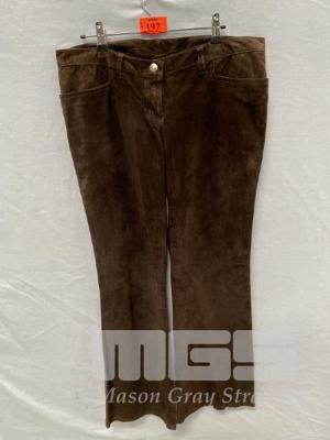 EXL WOMENS SUEDE PANTS, 'SASSY PANTS', BROWN, SIZE: 14, ORP: $320