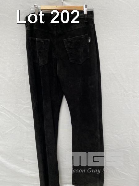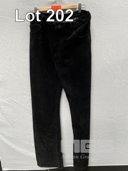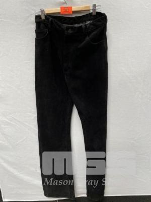 EXL MENS SUEDE PANTS, BLACK, SIZE: 34, (MISSING BUTTON)
