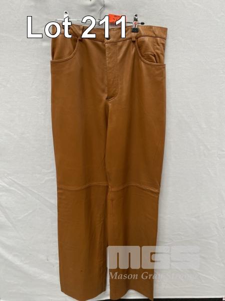 WOMENS LEATHER PANTS, CARAMEL, SIZE: 14