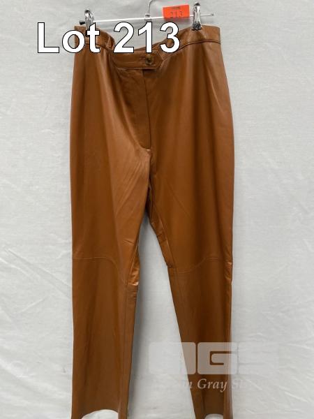 WOMENS LEATHER PANTS, CARAMEL, SIZE: 14