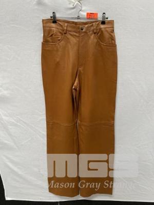 WOMENS LEATHER PANTS, CARAMEL, SIZE: 10
