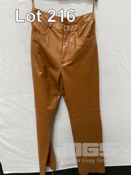 WOMENS LEATHER PANTS, CARAMEL, SIZE: 10