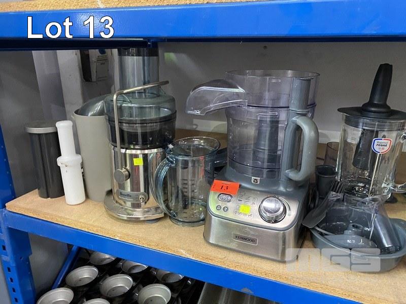 BREVILLE JUICE FOUNTAIN & KENWOOD FOOD PROCESSOR WITH BLADES & ATTACHMENTS