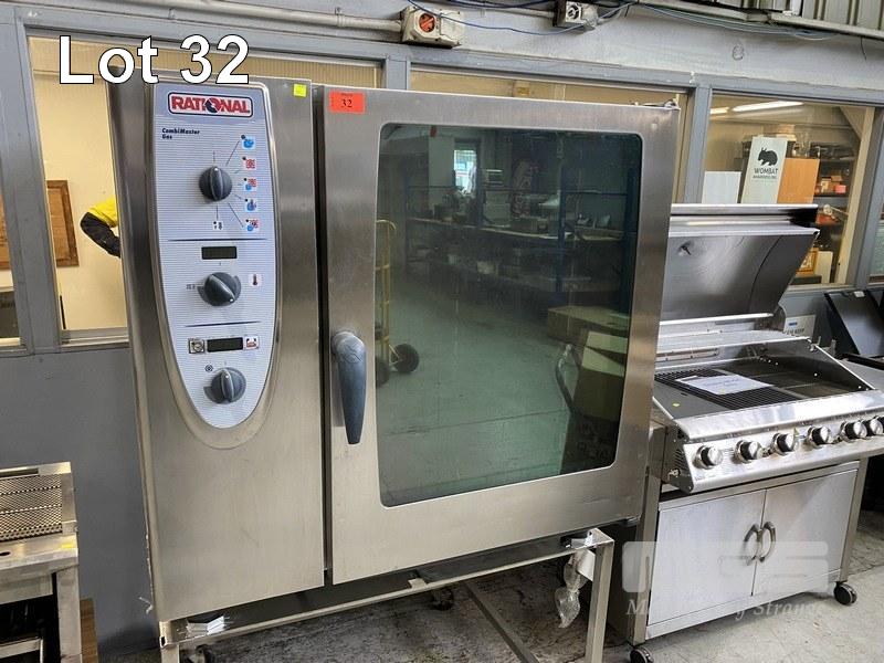 COMBI OVEN, RATIONAL COMBIMASTER 10 TRAY CAPACITY, STAINLESS STEEL CASED GAS ON MOBILE STAND