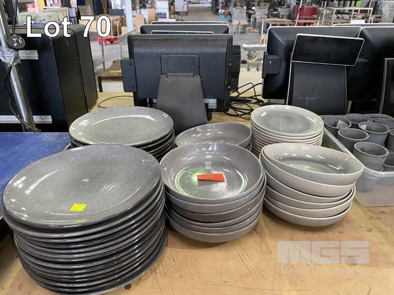 60 (APPROX) x ASSORTED STONEWARE PLATES & BOWLS