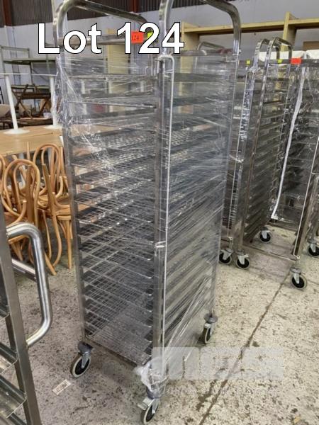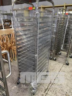 STAINLESS STEEL BAKERS TROLLEY, 16 TRAY WITH DRYING RACKS