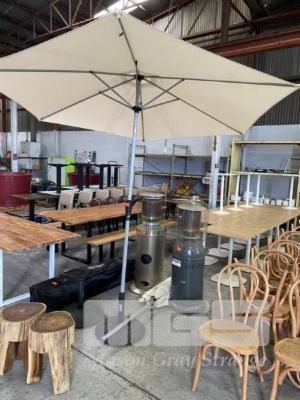 2 x CAFE UMBRELLAS, 250cm SPAN, CREAM