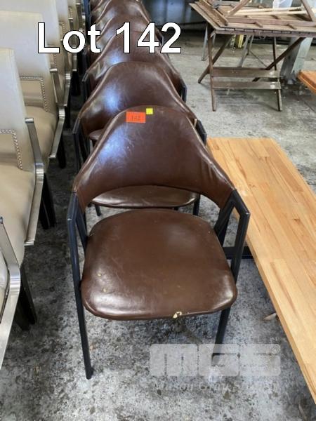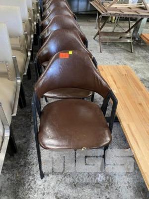 8 x DINING CHAIRS, BROWN VINYL, STEEL FRAME (SOME WORN)
