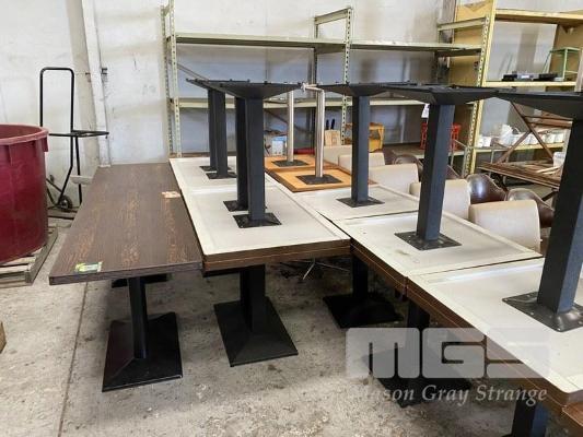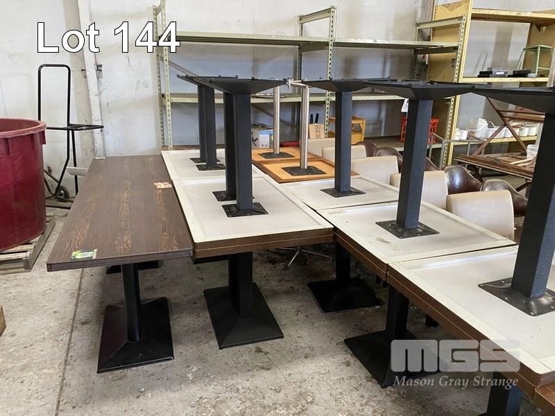 13 x CAFE TABLES, 6 @ 120 x 60cm & 7 @ 60 x 60cm, TIMBER GRAIN LAMINATE