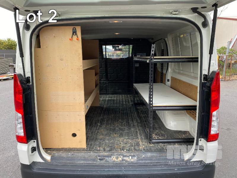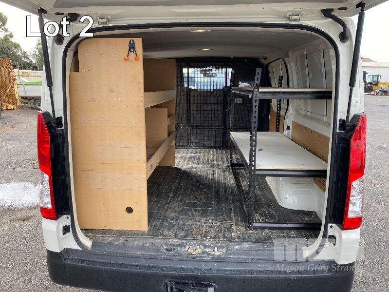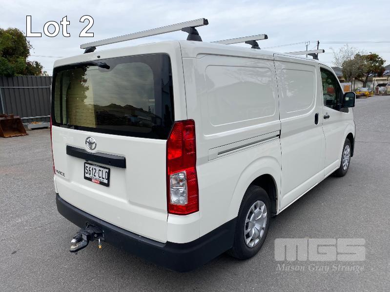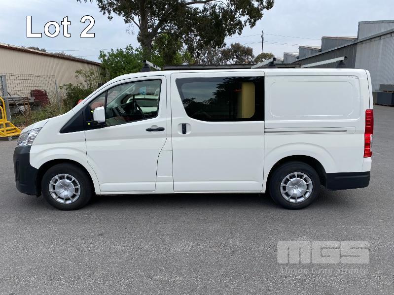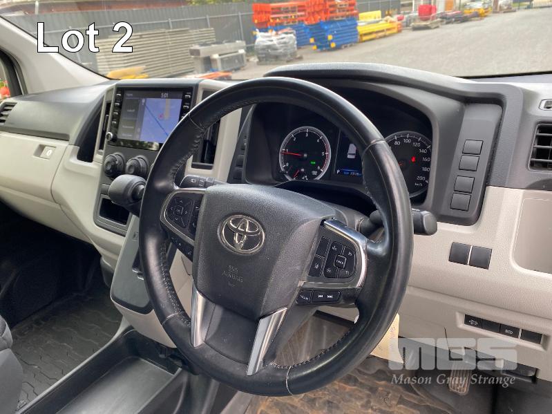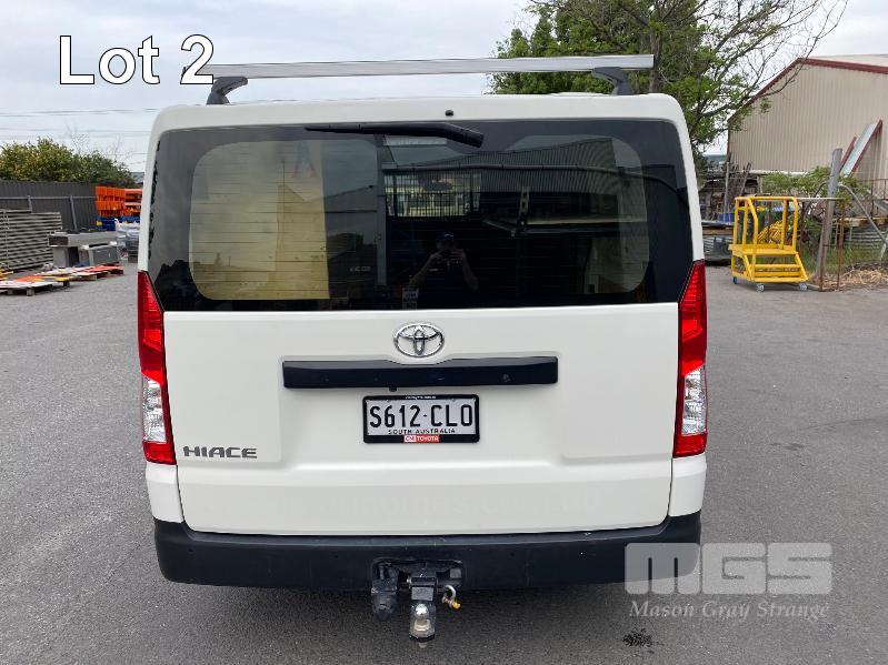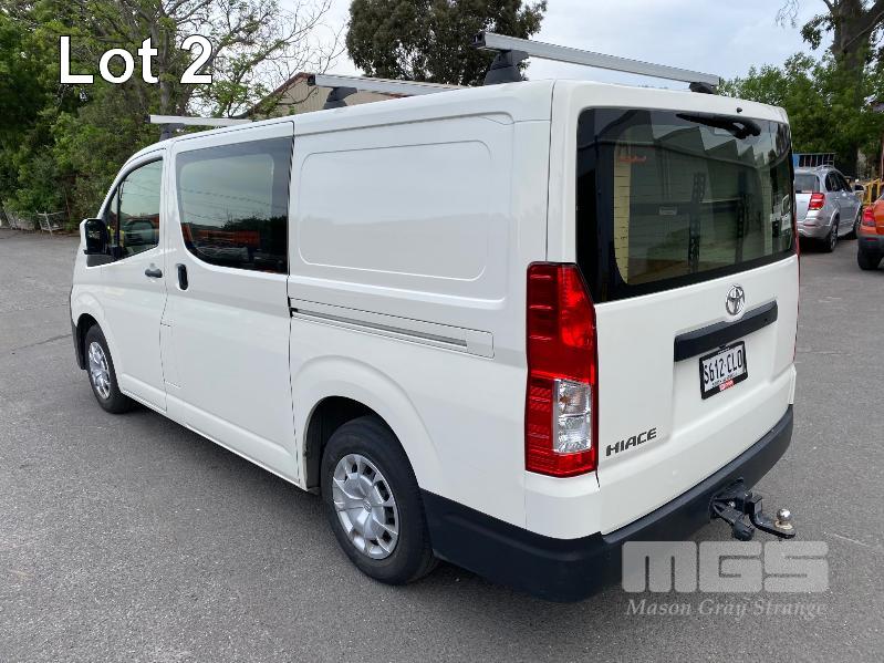 2021 TOYOTA HIACE GDH300R LWB VAN REG: S612 CLO (SA) VIN: JTFRA3AP708029182 ENG: 1G08772484 ODO: 30,679 kms INDICATED 2.8 LTR TURBO DIESEL, AUTO, WHITE DUCO, 2 DOORS, 2 SEAT, AIR BAG, AIR CON, BLUETOOTH, CARGO BARRIER, CENTRAL LOCKING, CRUISE CONTROL, DECALS, IMMOBILISER, POWER STEERING, POWER WINDOWS, ROOF RACKS, SPARE WHEEL, TOW BAR, REAR SHELVING FITTED KEY #13 (WITH 1 KEY/S, WITH OWNER'S MANUAL, WITH SERVICE BOOKS)