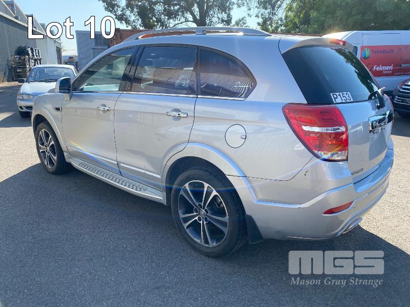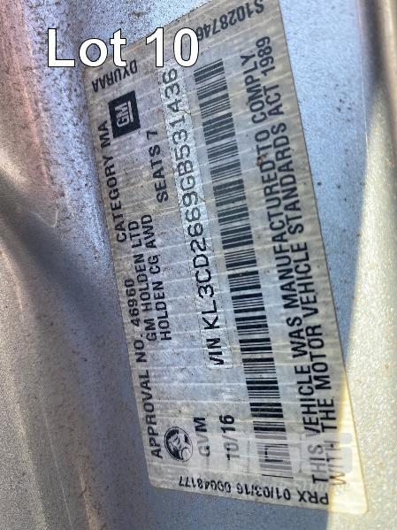 2016 HOLDEN CAPTIVA CG LTZ SUV STATION WAGON AWD REG: NO PLATES VIN: KL3CD2669GB531436 ODO: 94,734kms SHOWING 4 CYLINDER TURBO DIESEL, AUTOMATIC TRANSMISSION, METALLIC SILVER, 4 DOORS, 7 SEAT, AWD ABS, AIR BAG, AIR CON, ALLOY WHEELS, BLUETOOTH, CENTRAL LOCKING, CRUISE CONTROL, IMMOBILISER, POWER WINDOWS, ROOF RACKS, SIDE STEP, SPARE WHEEL, SUNROOF, TRACTION CONTROL, REVERSE CAMERA & LCD KEY #21 (WITH 1 KEY/S) CONDITION: RIGHT REAR BUMPER & GUARD - IMPACT DAMAGE & SCRATCHES FRONT RIGHT BUMPER - SCRATCHES & SCRAPES