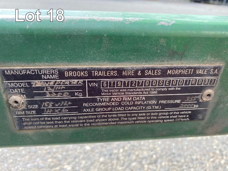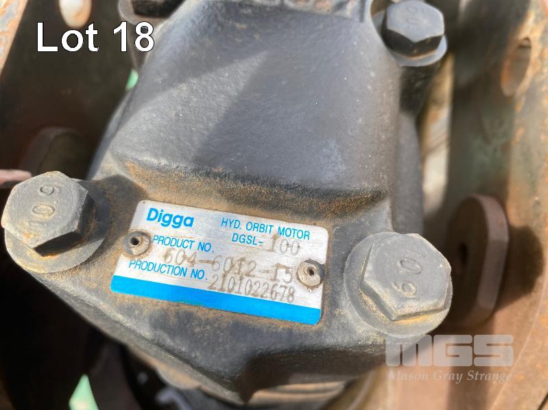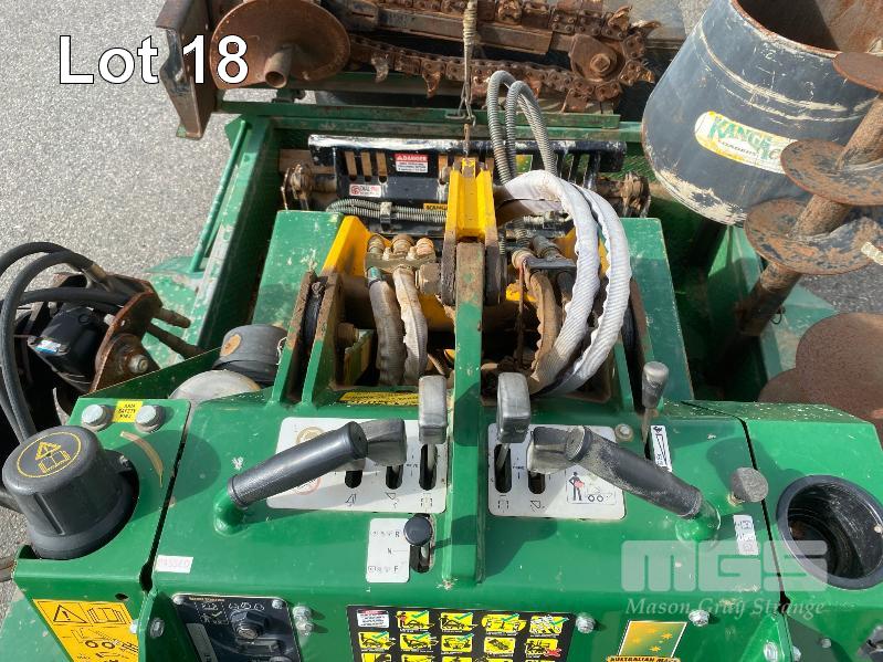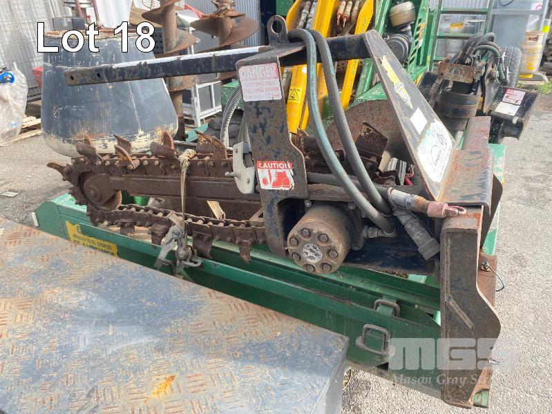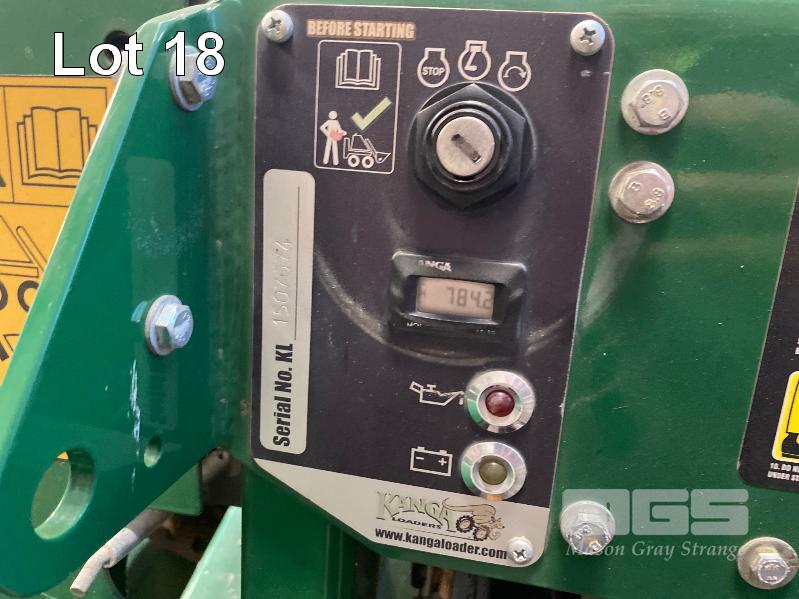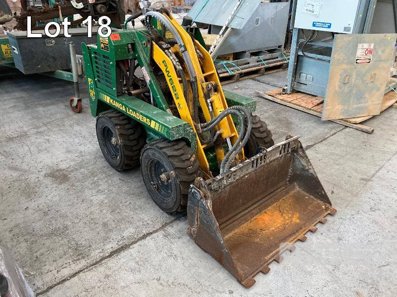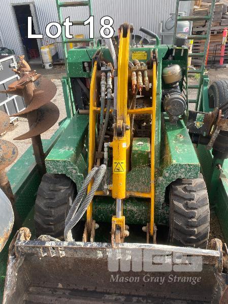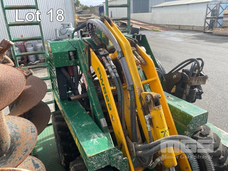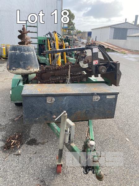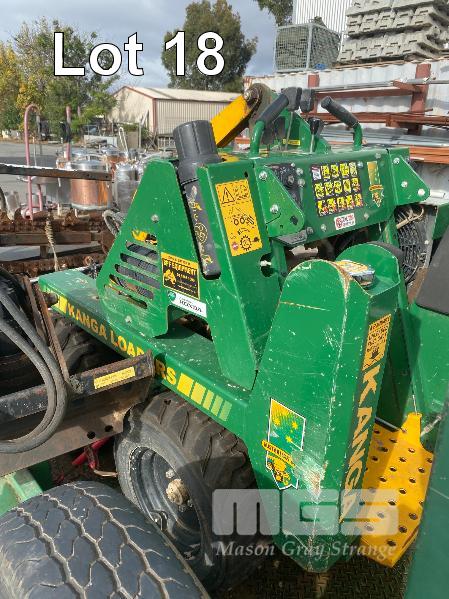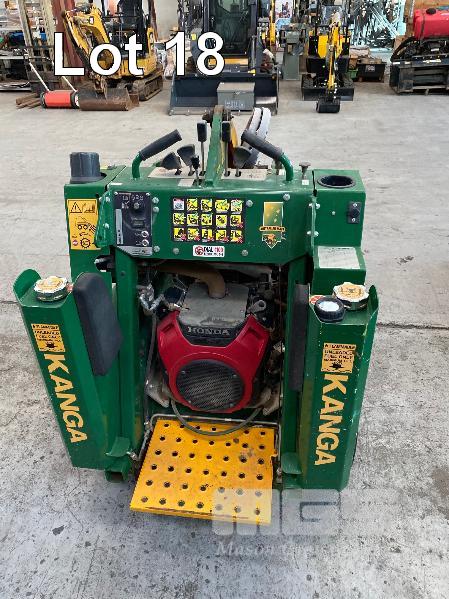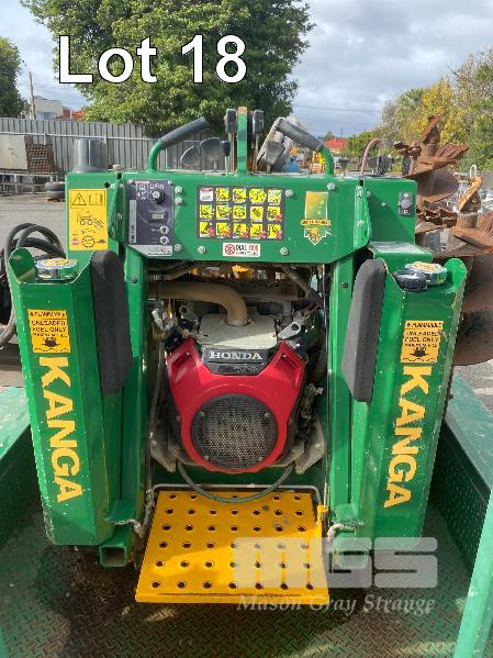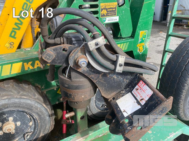 KANGA PW628 MINI LOADER HOURS: 784 S/NO: 1S07074 WHEELED, POWERED BY HONDA GX690 PETROL ENGINE POWER RATING 16.5kw FITTED WITH 4 IN 1 BUCKET, WITH ADDITIONAL ATTACHMENTS, INCL AUGER DRIVE UNIT, DIGGA ORBITAL MOTOR MOD: DGSL-100 WITH 3 AUGERS & CONCRETE MIXER TRENCHING ATTACHMENT MOD: UNI900 TRENCHER KEY# 40 MOUNTED ON 2014 BROOKS 5 x 8 TANDEM AXLE PLANT TRAILER REG: S987 TEI VIN: 6T9T2700SE0D1R033 REAR LOAD RAMPS, HINGED, BALL HITCH, BRAKES, JOCKEY WHEEL FRONT MOUNT TOOL BOX
