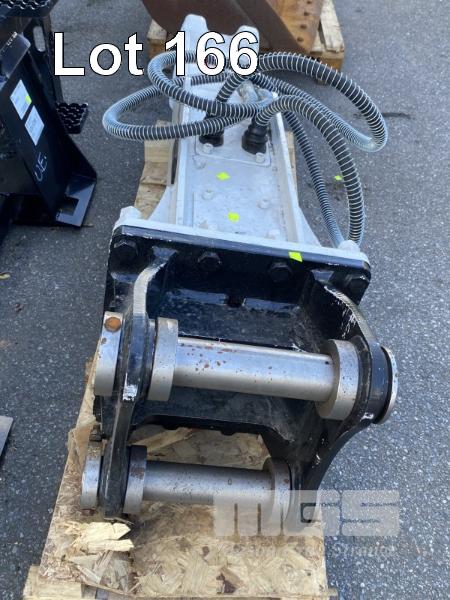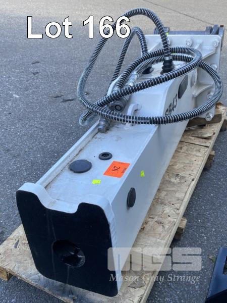 ROCK BREAKER ATTACHMENT, MODEL: SB43, TOTAL LENGTH 1400mm HITCH PINS, 60cm DIAMETER x 370mm WITH HOSES & 2 x BRAKE BITS, 700 (L) x 70mm DIAMETER, AS NEW!