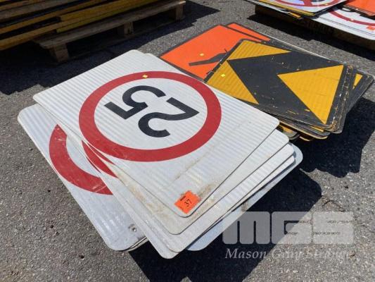 20 (APPROX) x ROAD WORK SIGNS, INCLUDING SPEED LIMIT, ROAD WORKS, ETC 1 x PALLET