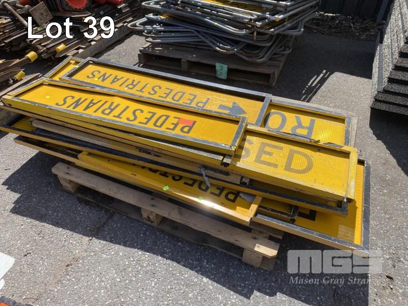 20 (APPROX) x ROAD WORK SIGNS, INCLUDING ROAD CLOSED, PEDESTRIAN CAUTION, ETC 1 x PALLET