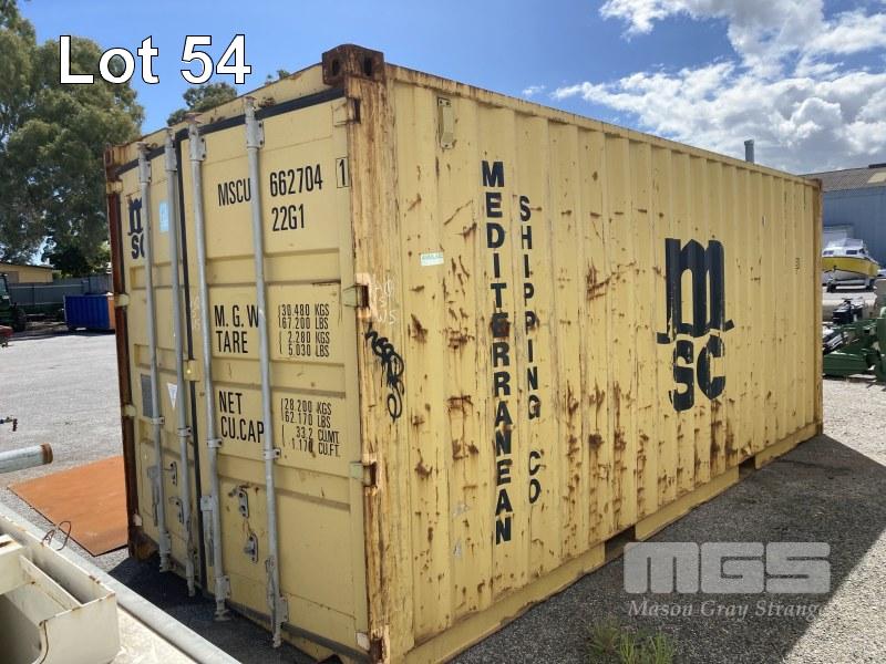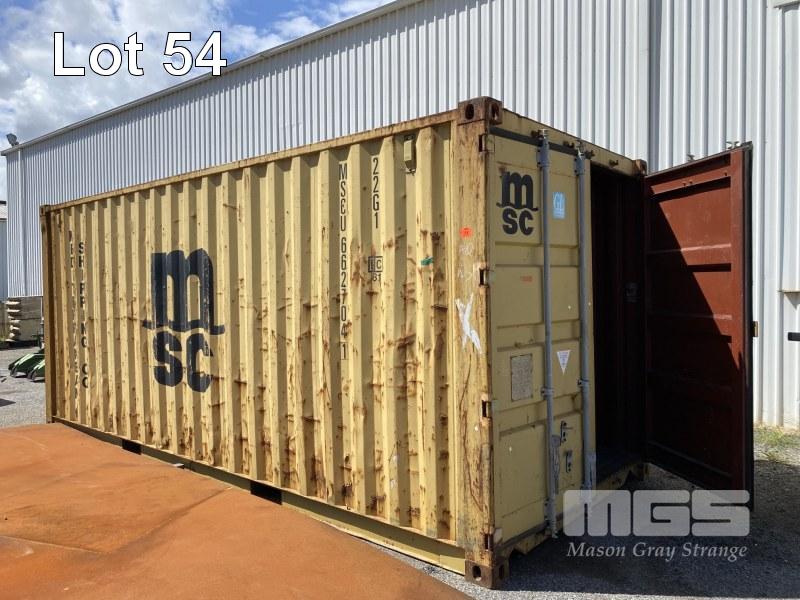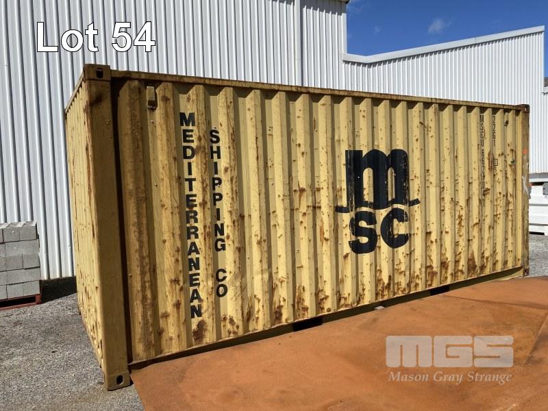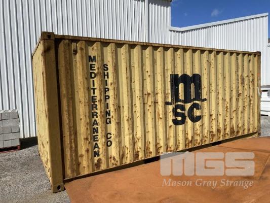20' SHIPPING CONTAINER, YELLOW, WATER TIGHT, TIMBER FLOOR, TIMBER RACKING 1 SIDE