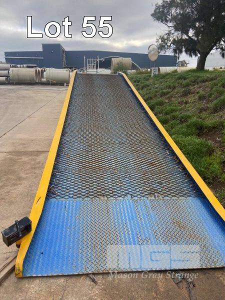 LOADING RAMP HEEVE, MODEL: H0048 D.O.M 2019 ADJUSTABLE HEIGHT: 1200- 1650MM DIMENTIONS: 10300 X 2200 X 1200MM LOAD CAP: 8000KG UNIT WEIGHT: 2430KG