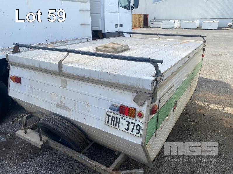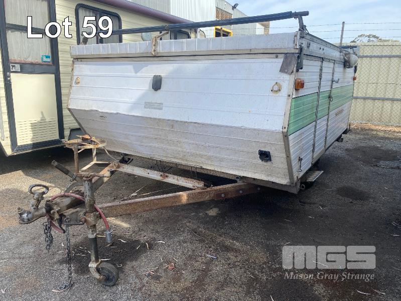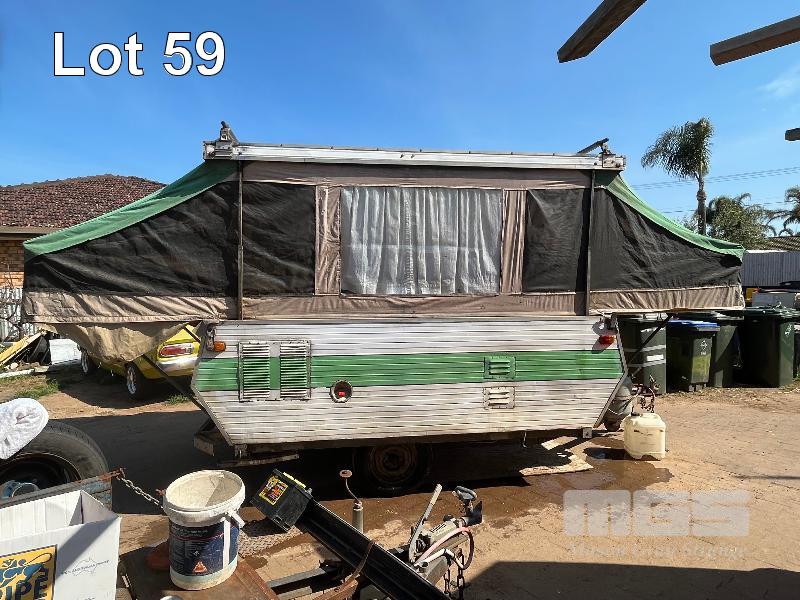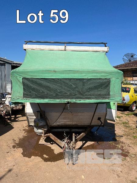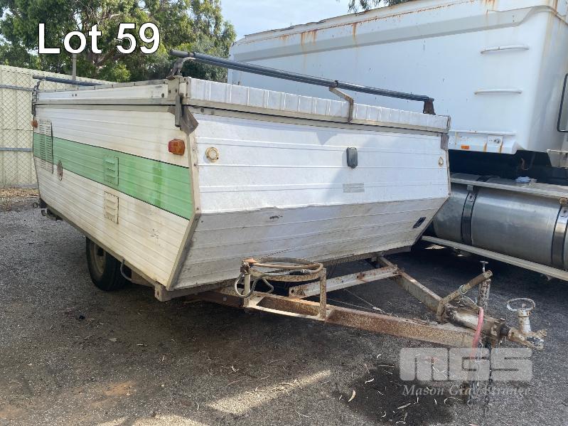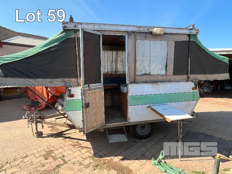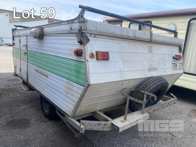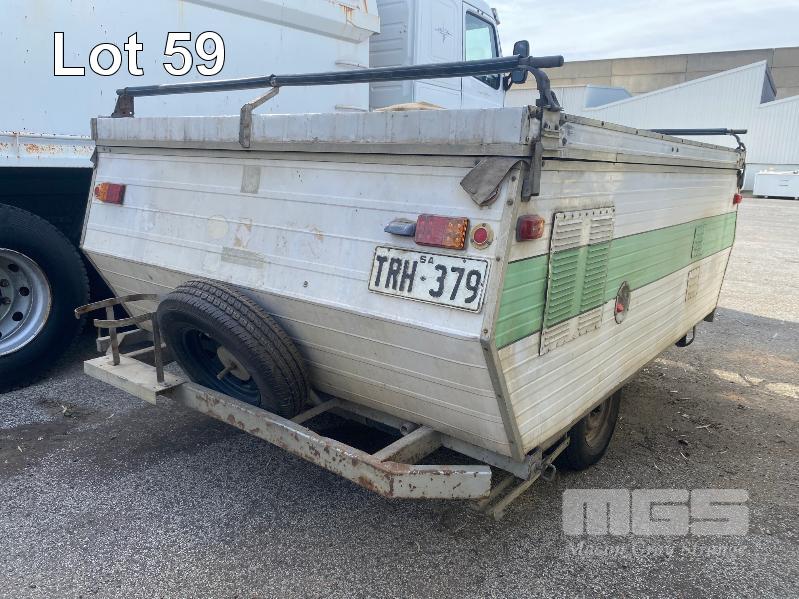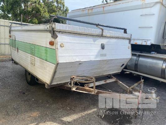 1974 SUNWAGON, POP TOP, CARAVAN, 16 ft REG: TRH 379 (SA) CHASSIS NO: X183 SINGLE AXLE, BALL HITCH, BRAKES, ROOF RACK, SPARE WHEEL, TWIN BED ENDS, (SLIDE OUT) 5 SEAT DINING AREA, GAS COOKTOP, 3 WAY FRIDGE, SINK WITH HAND PUMP TAP, BELLY WATER TANK WITH REG PAPERS
