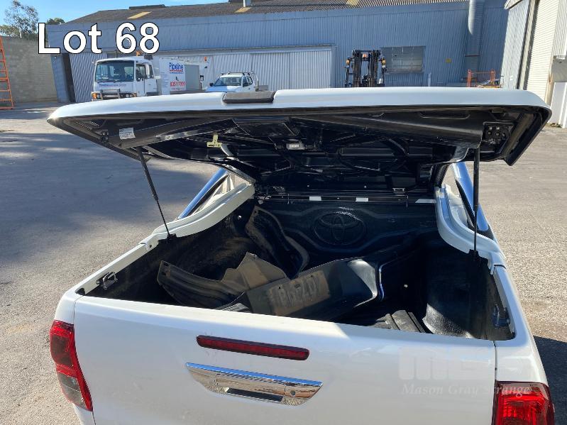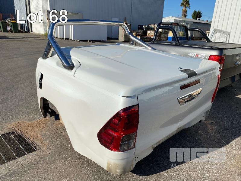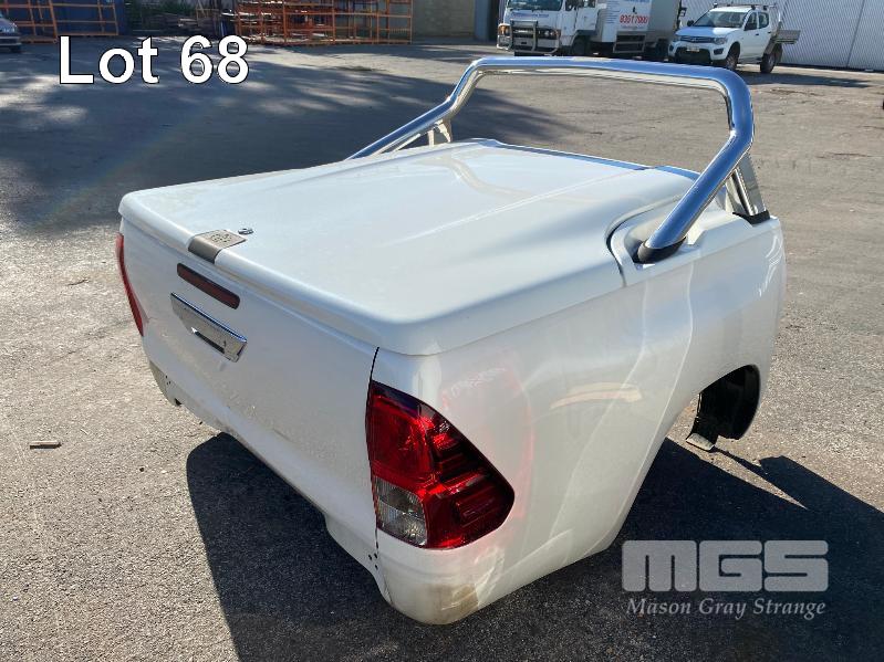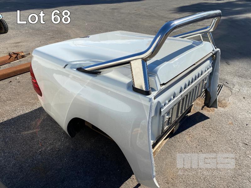 UTE BODY, TOYOTA HILUX WITH HARD COVER, GAS LIFT, ALLOY ROLL BAR, BUMPER, LIGHTS & LADDER CARRY BAR, WHITE 1650 x 1700mm
