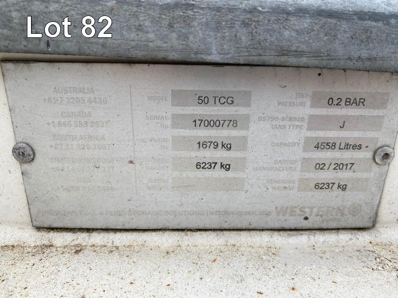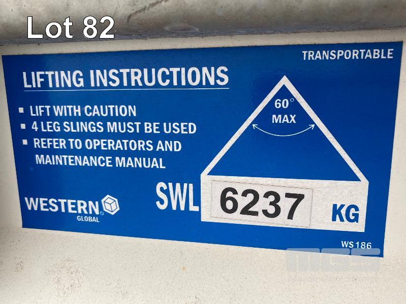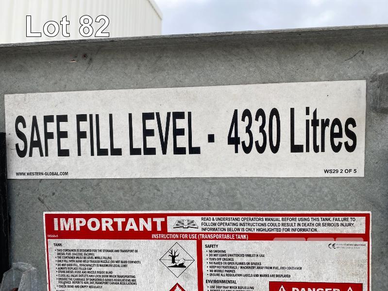 TRANSPORTABLE FUEL POD, WESTERN GLOBAL TRANS CUBE MOD: 50TCG CAP: 4558 LITRE DOM: 2017 FITTED WITH FORK POCKETS & LIFTING POINTS SWL: 6237 STACKABLE EMPTY WEIGHT: 1719kg